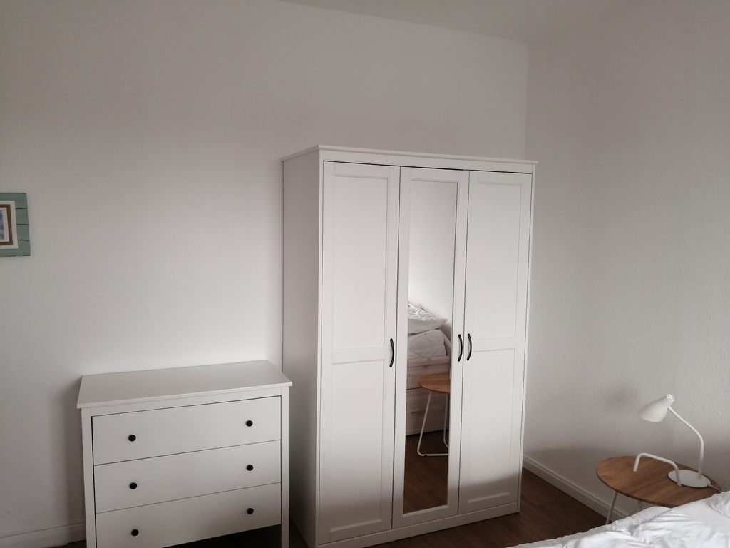 großes Schlafzimmer 18 qm, mit Doppelbett 1,80m x 2 m, Lesesessel, gr. Kleiderschrank
